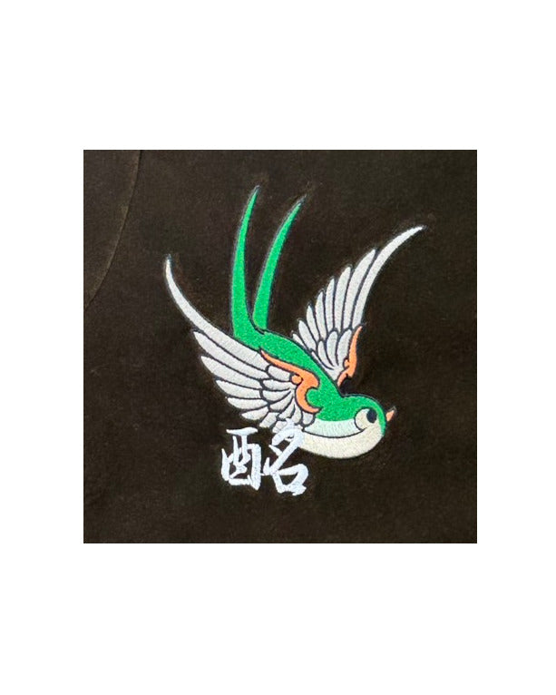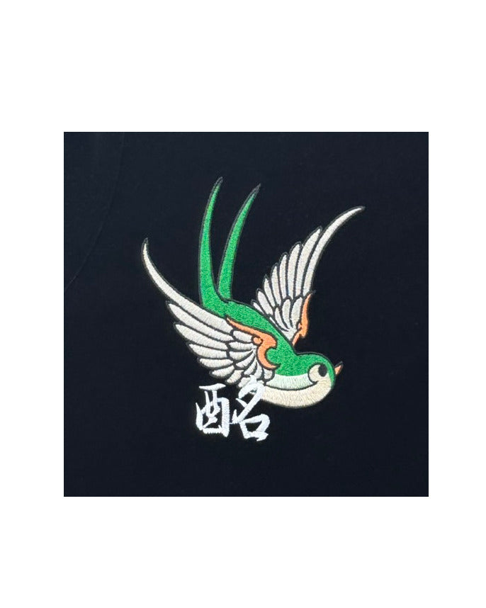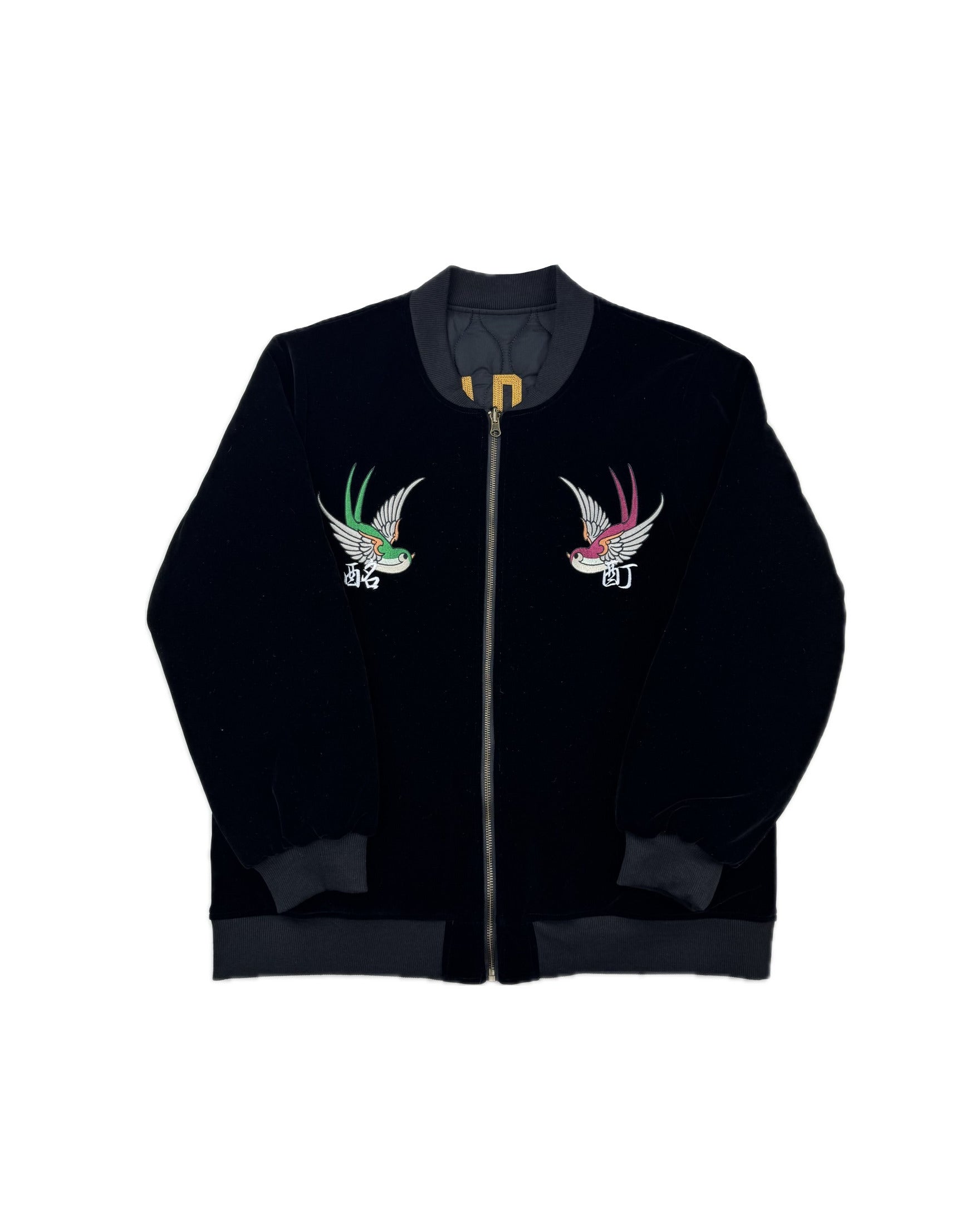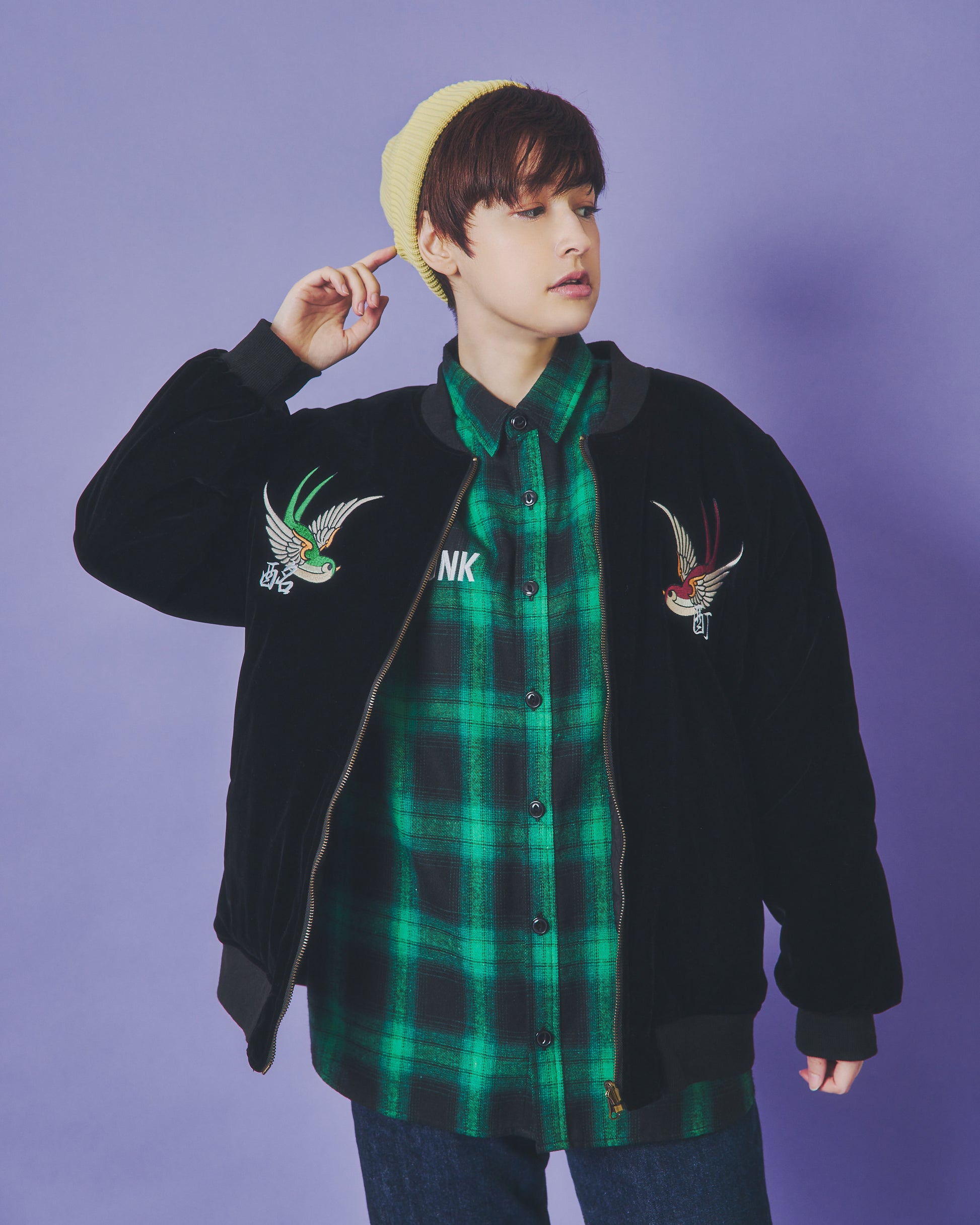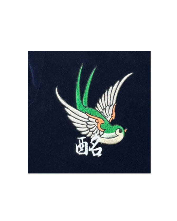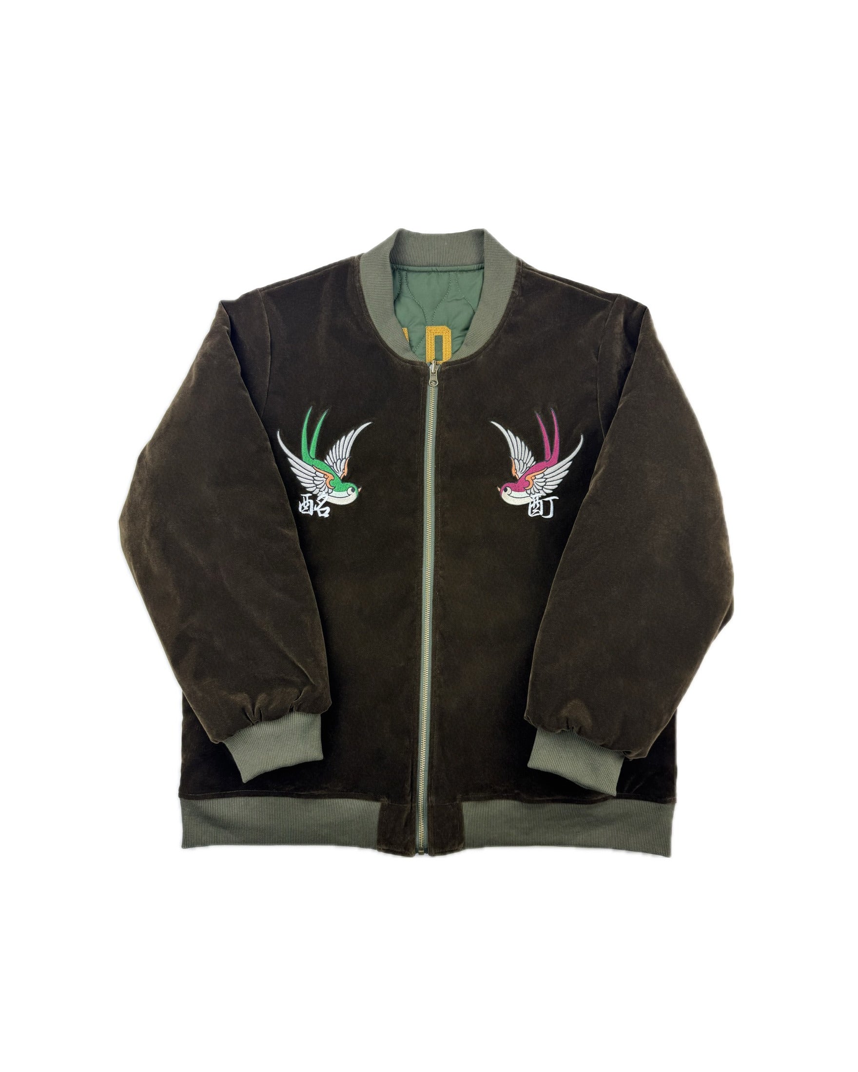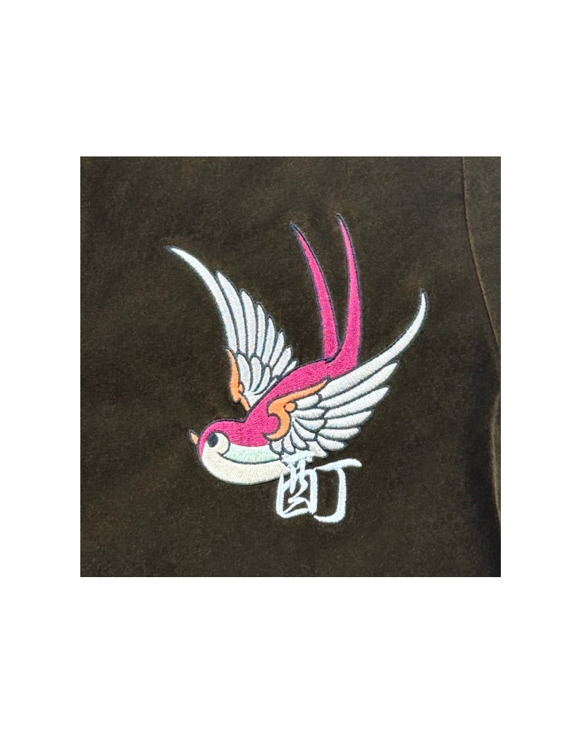 暖かみのあるウェーブキルト面はYOIDOREの代表的モチーフ「スーベニア」デザイン。胸には酔虎、袖には酔龍を刺繍であしらい、アグレッシブさを強調したミリタリーなアウターです。