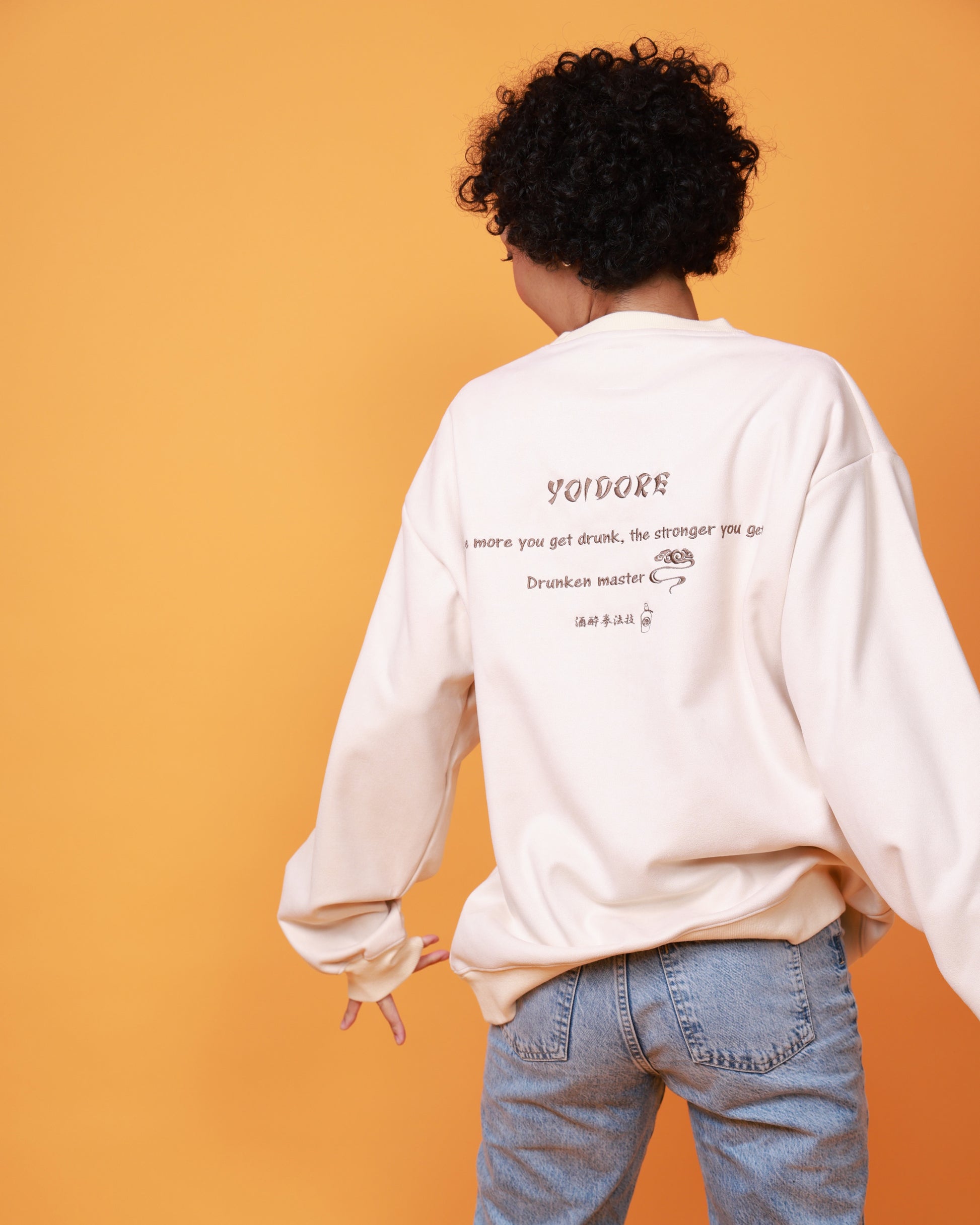 バックも刺繍デザインでよいどれたちに向けられた酔いどれ拳法の神髄、「酔えば酔うほど強くなる」のメッセージが込められています。