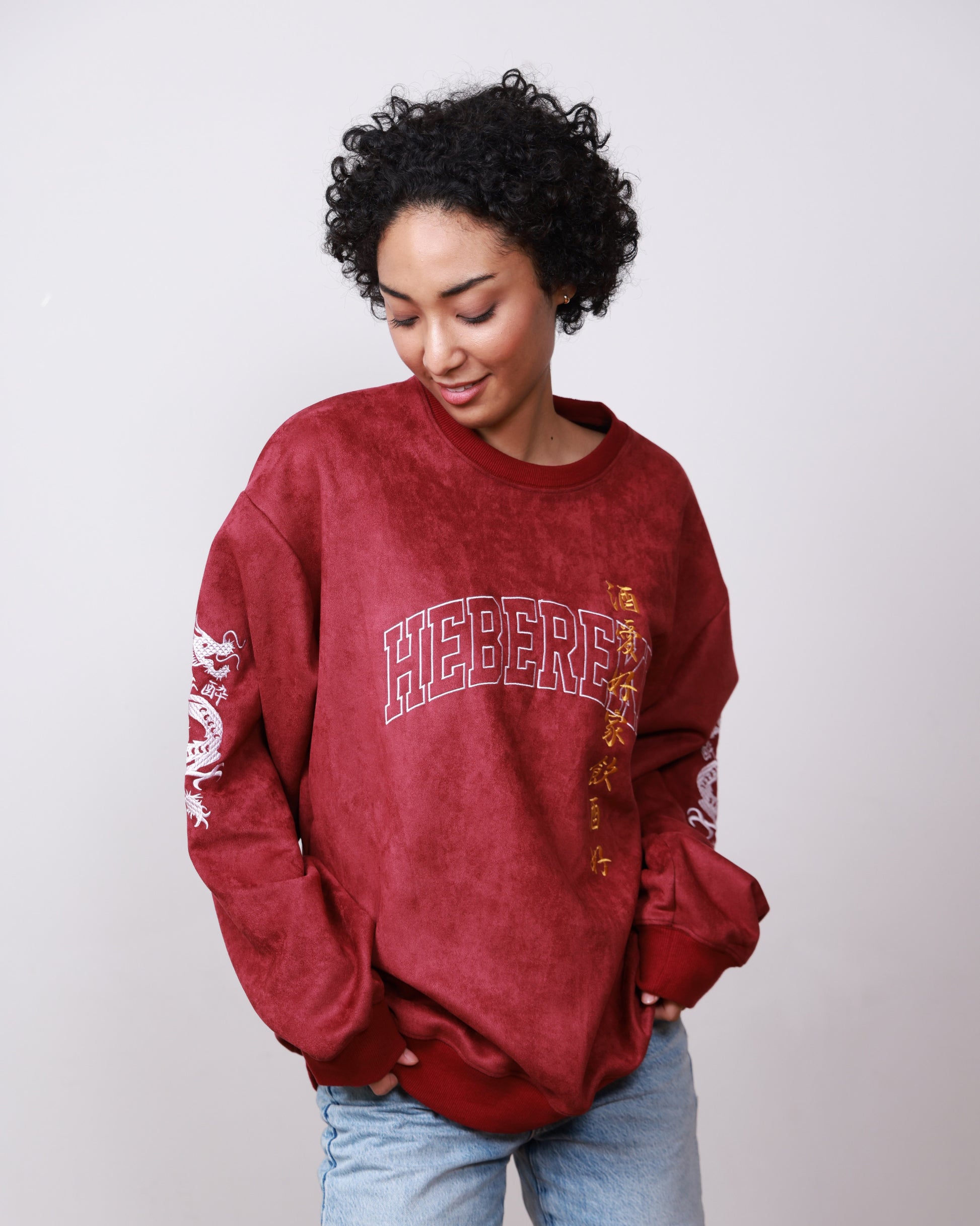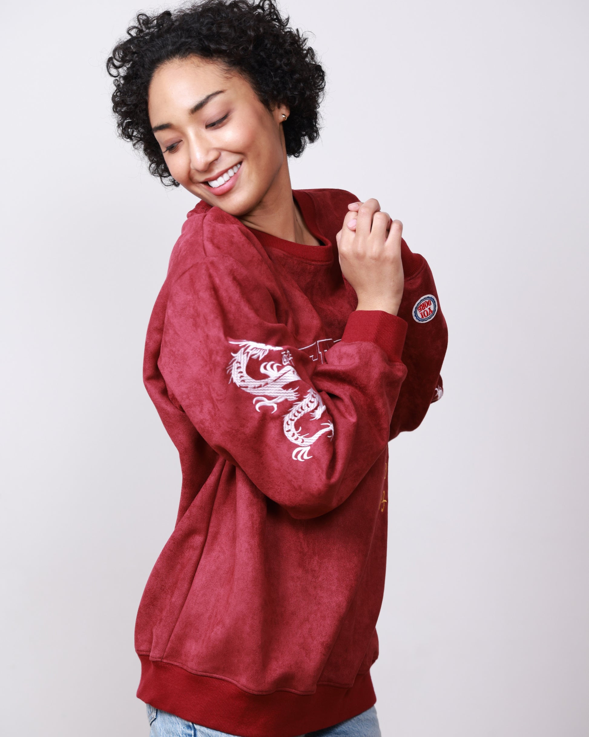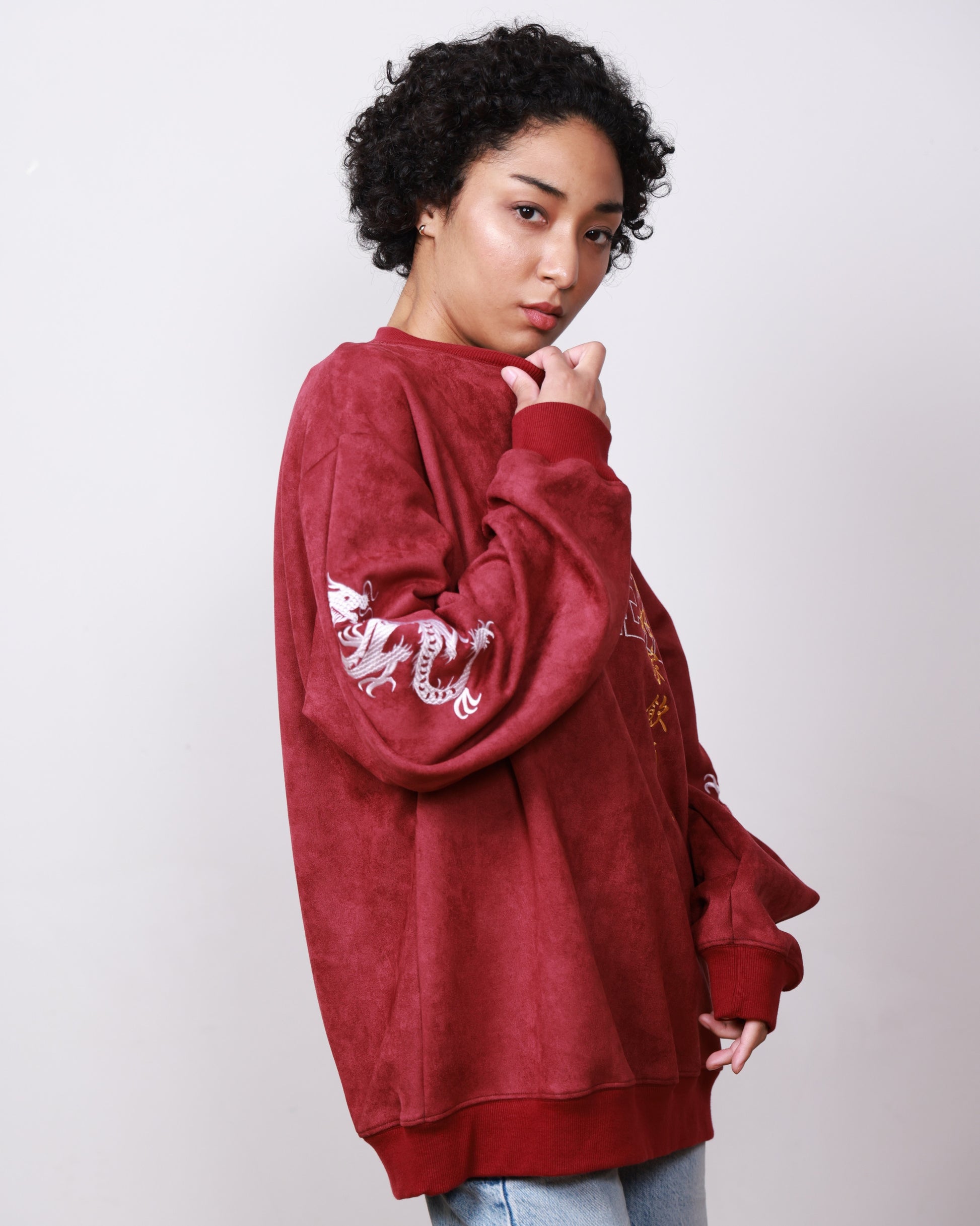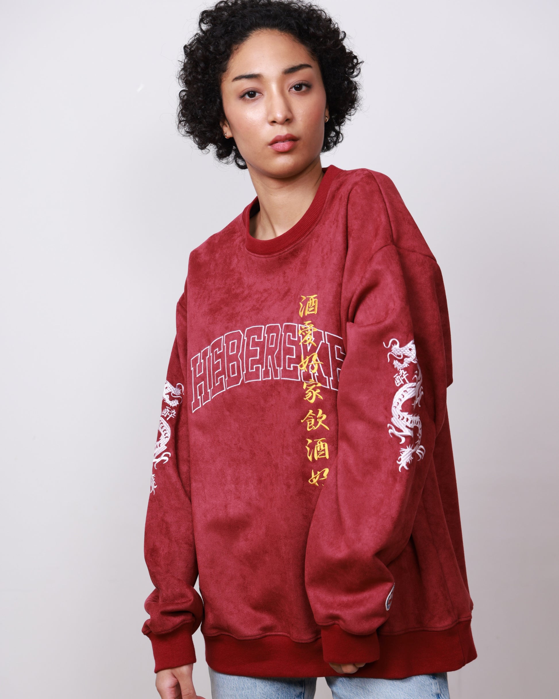 ボディは滑らかな風合いのフェイクスエード生地を採用し、ただのスウェットとは一味違った高級感があります。