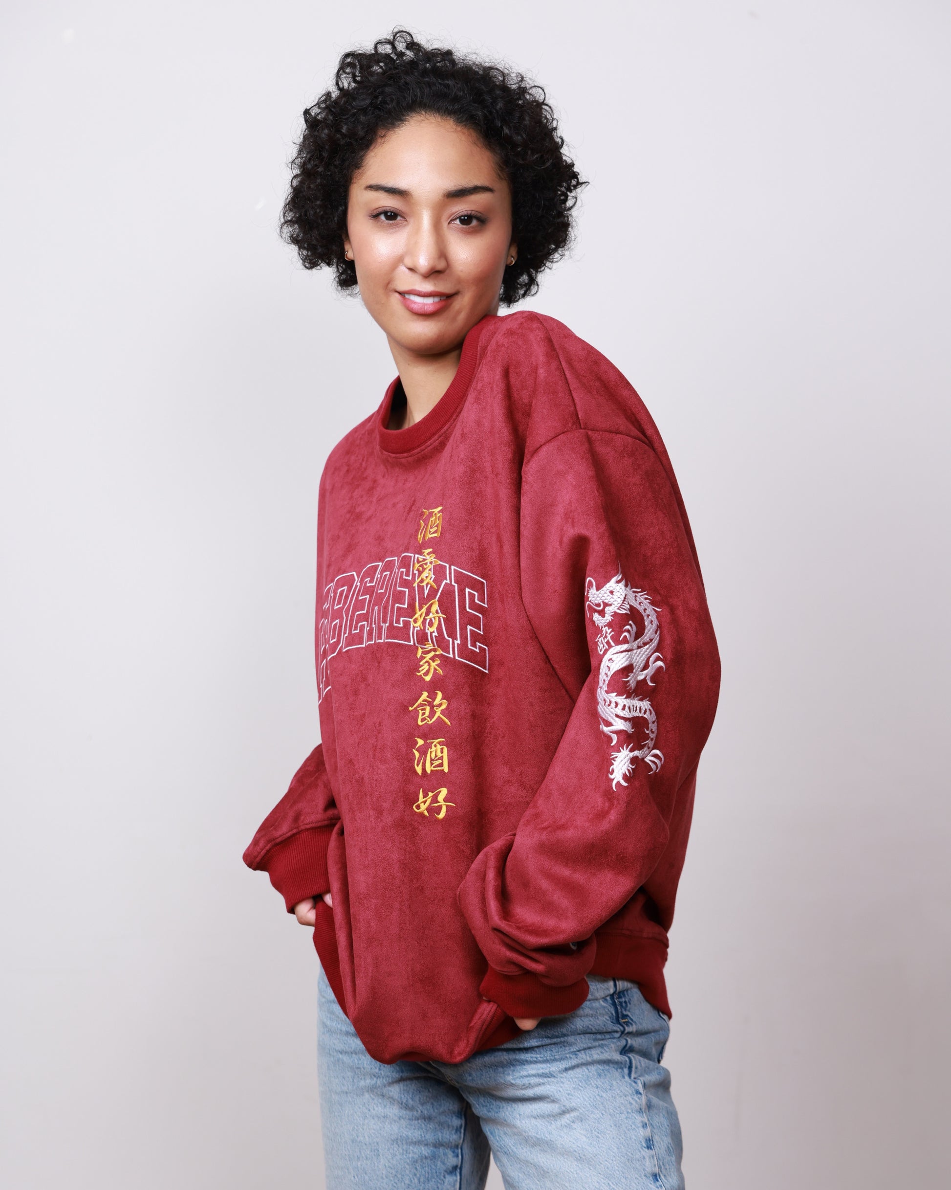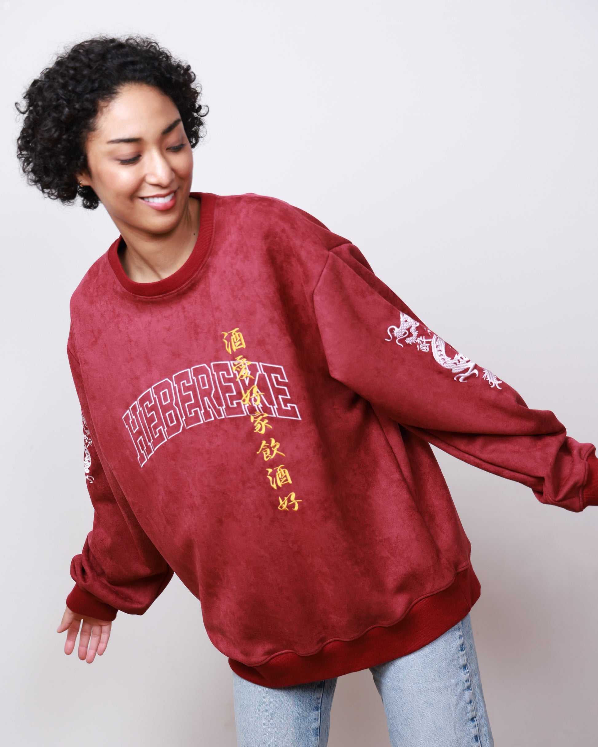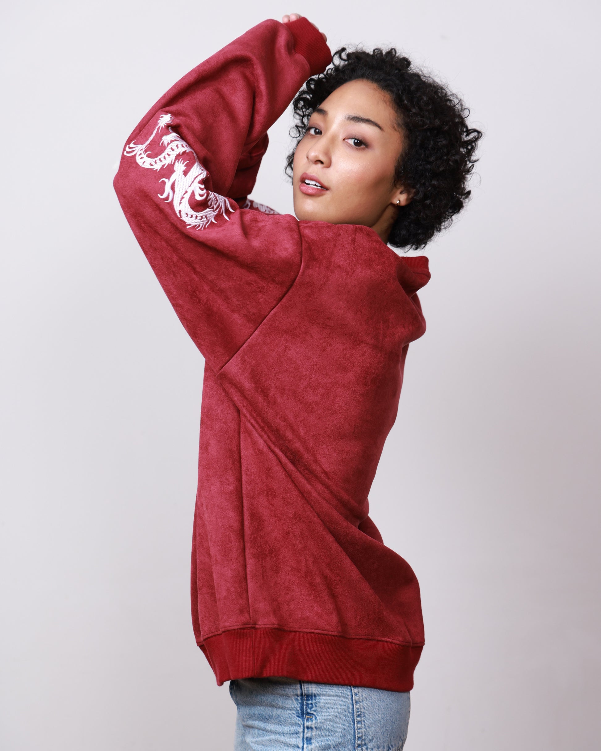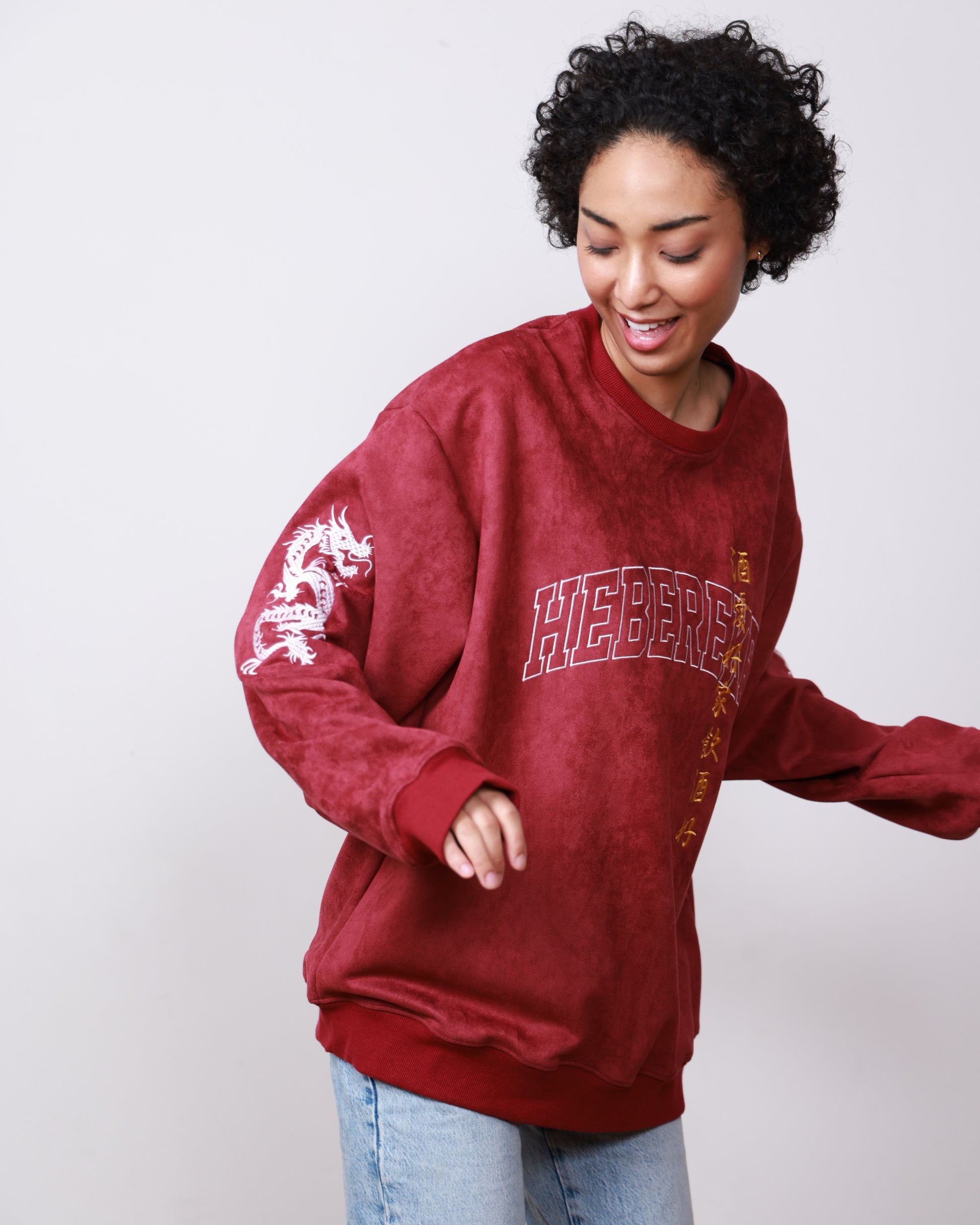 ボディは滑らかな風合いのフェイクスエード生地を採用し、ただのスウェットとは一味違った高級感があります。