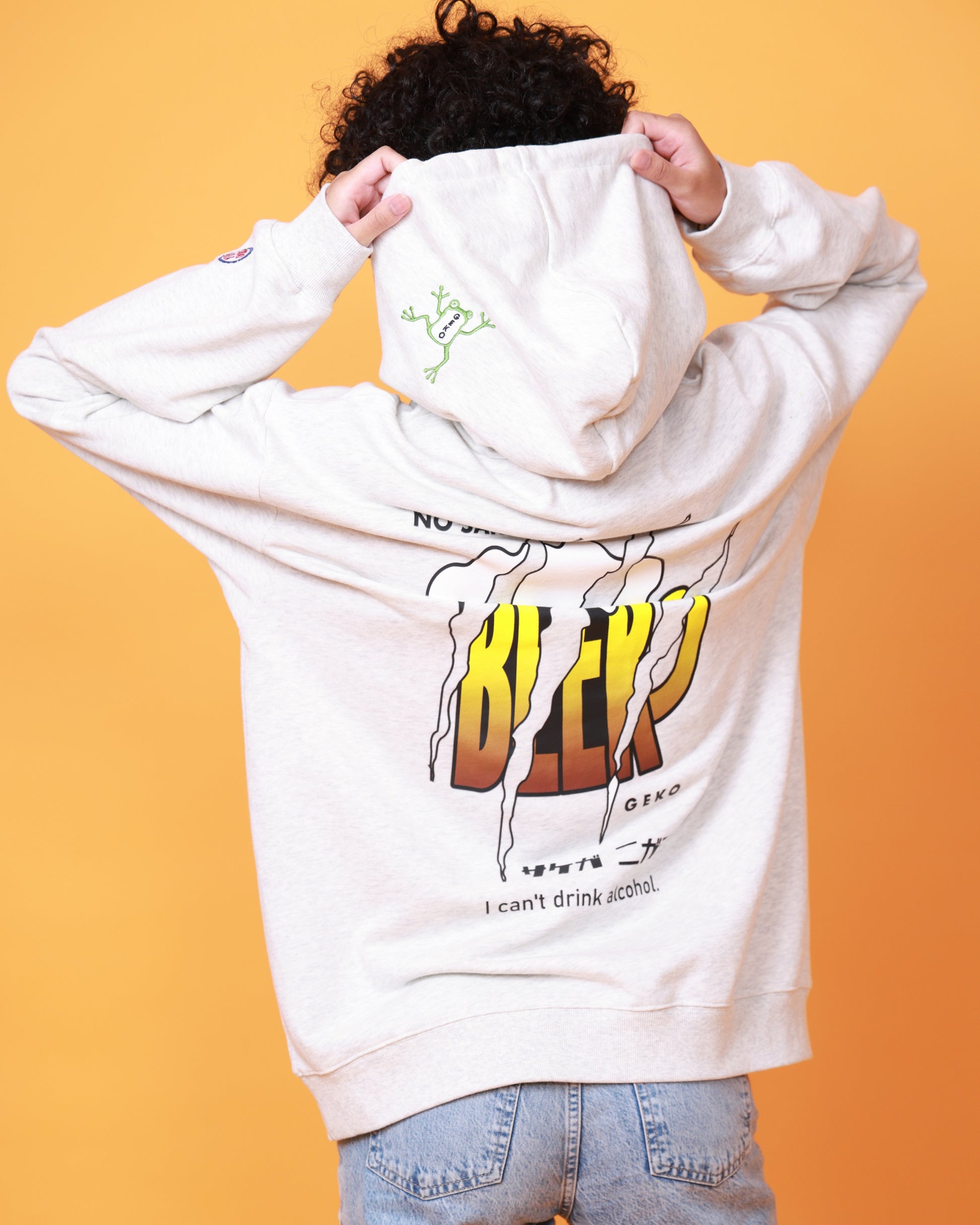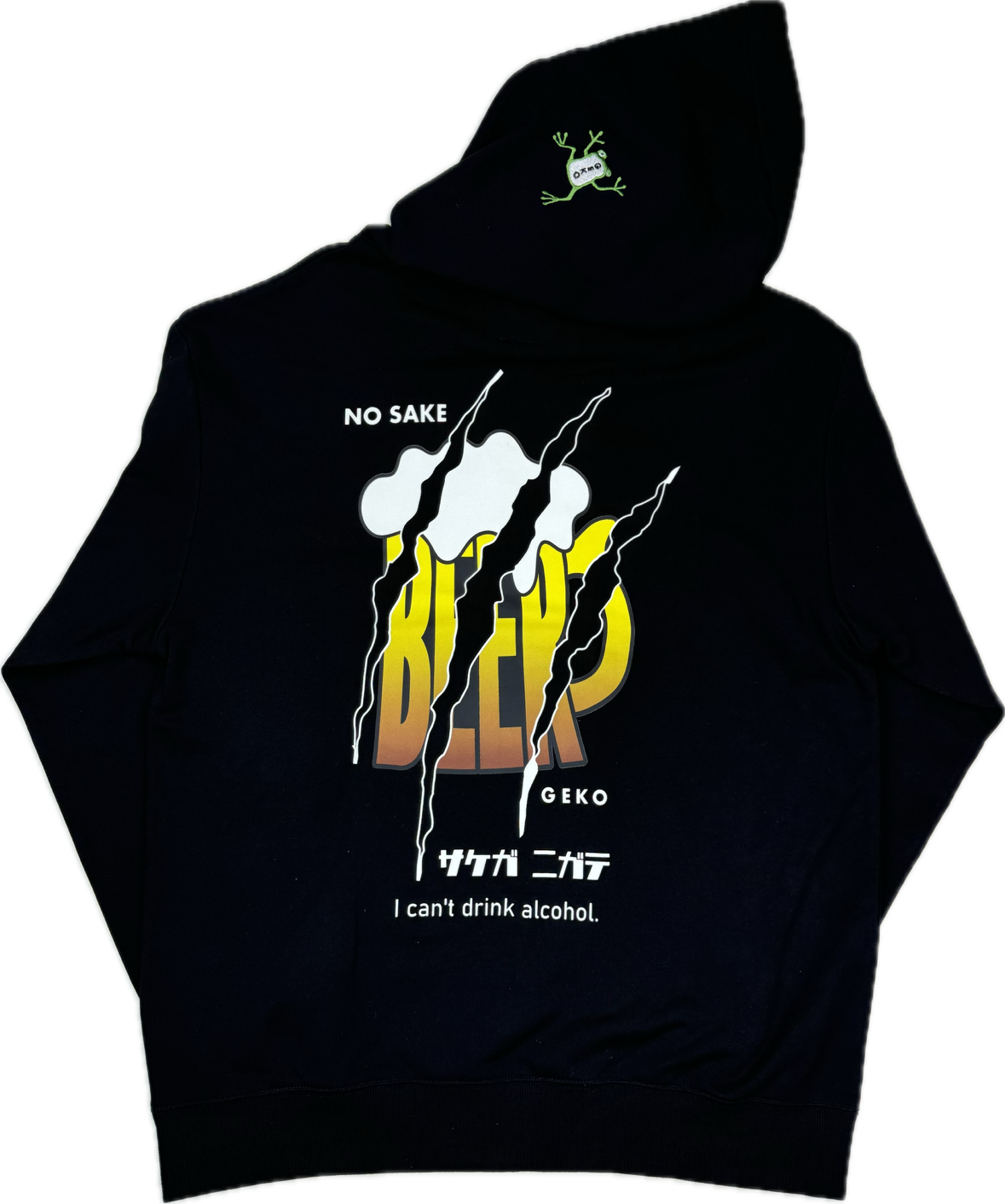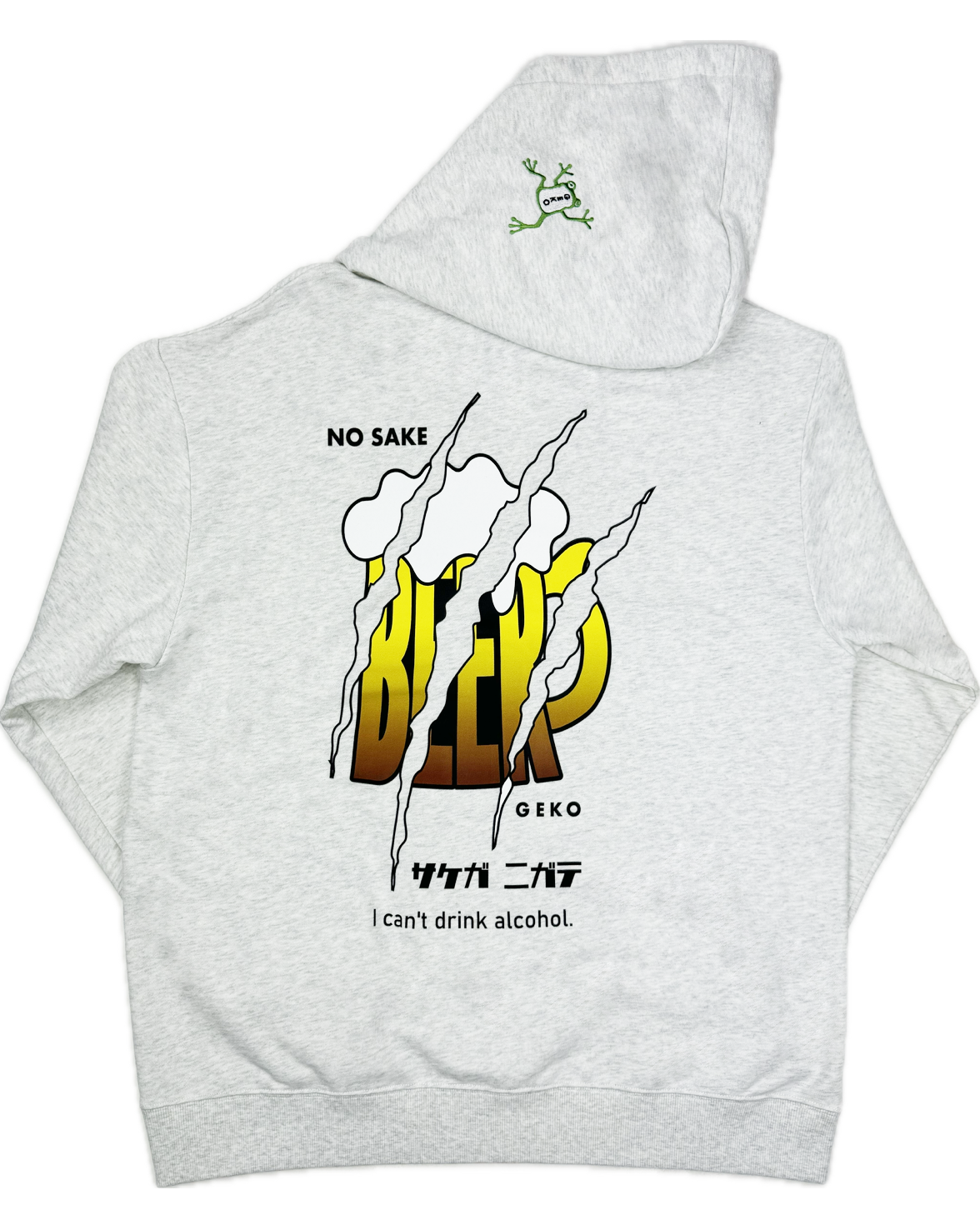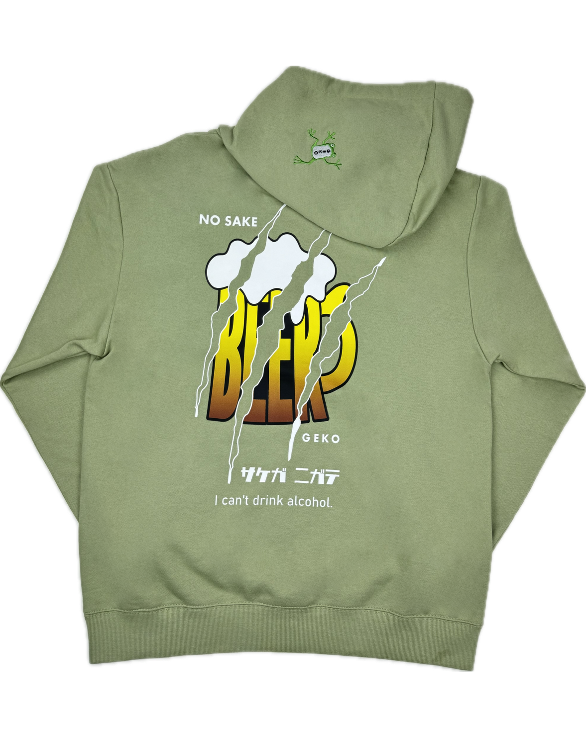 YOIDOREの象徴的アニマル「酔虎」の対局をなす新キャラクター「下戸カエル」がさりげなく刺繍されており、呑まない姿勢を全面に主張した新感覚のアイテムです。