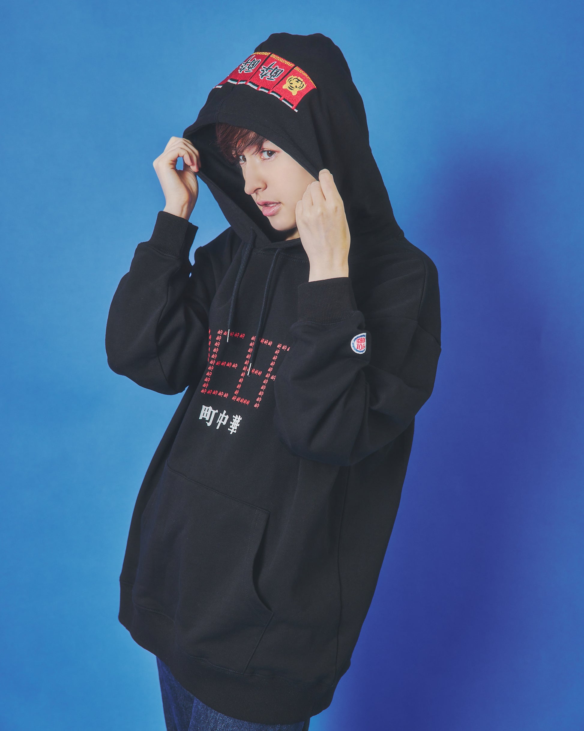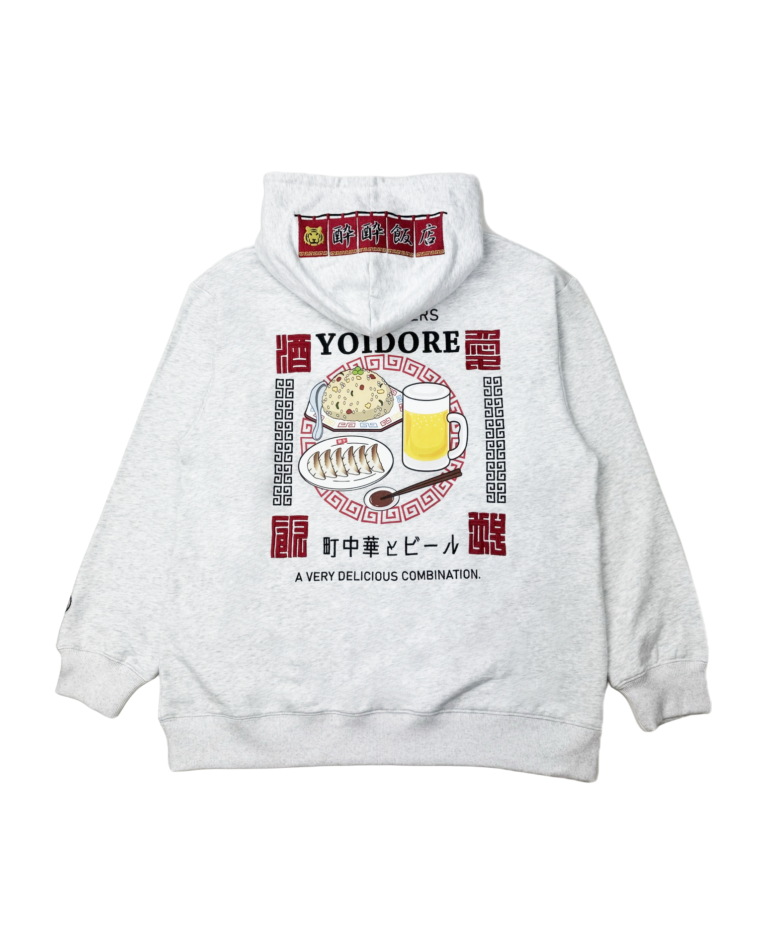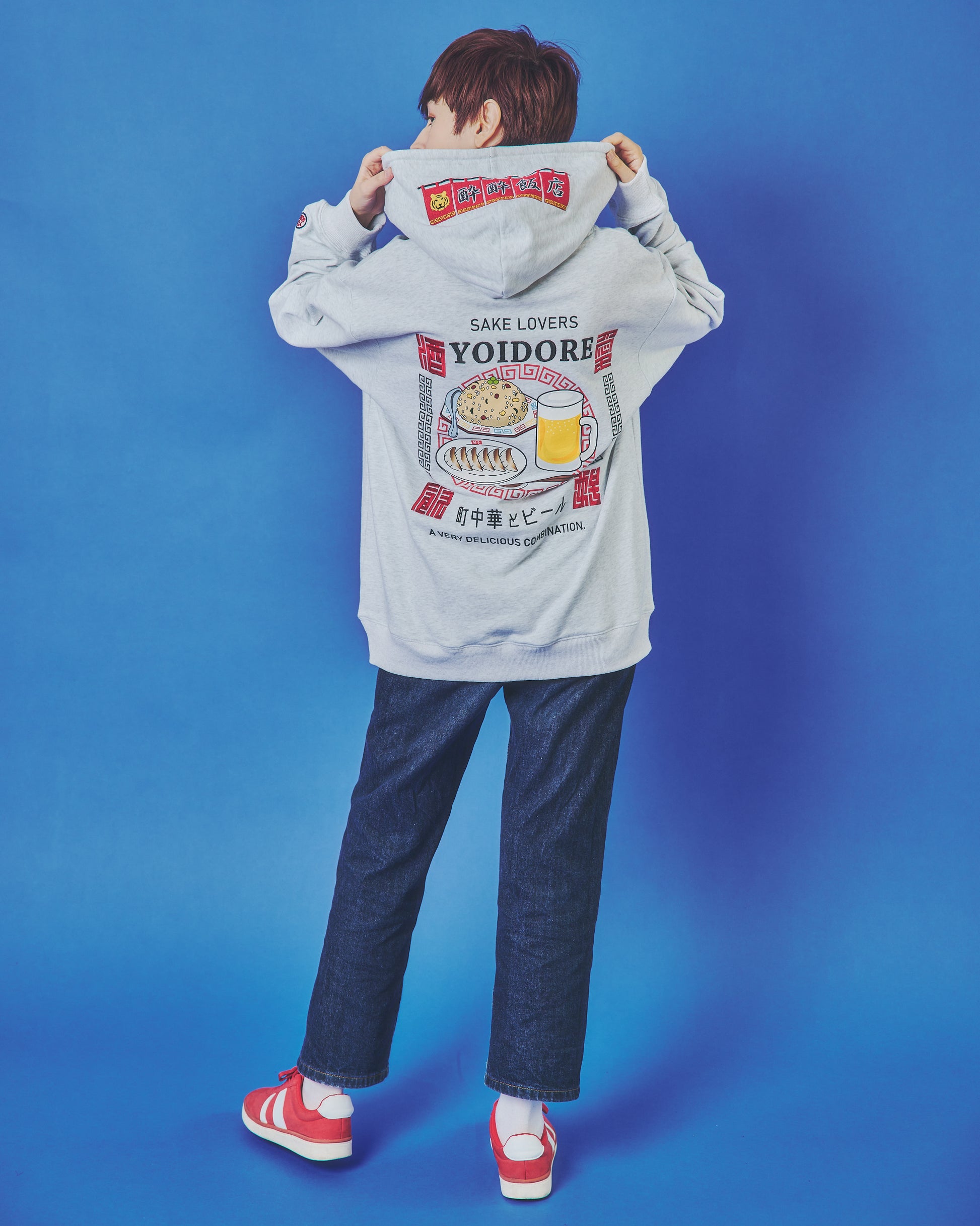 フードには架空の町中華店「酔酔飯店」の暖簾をガッチリ刺繍でアクセントに。