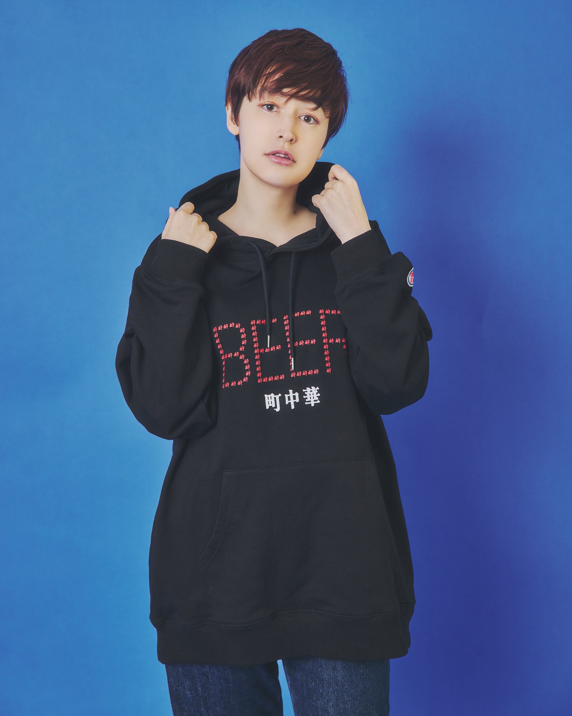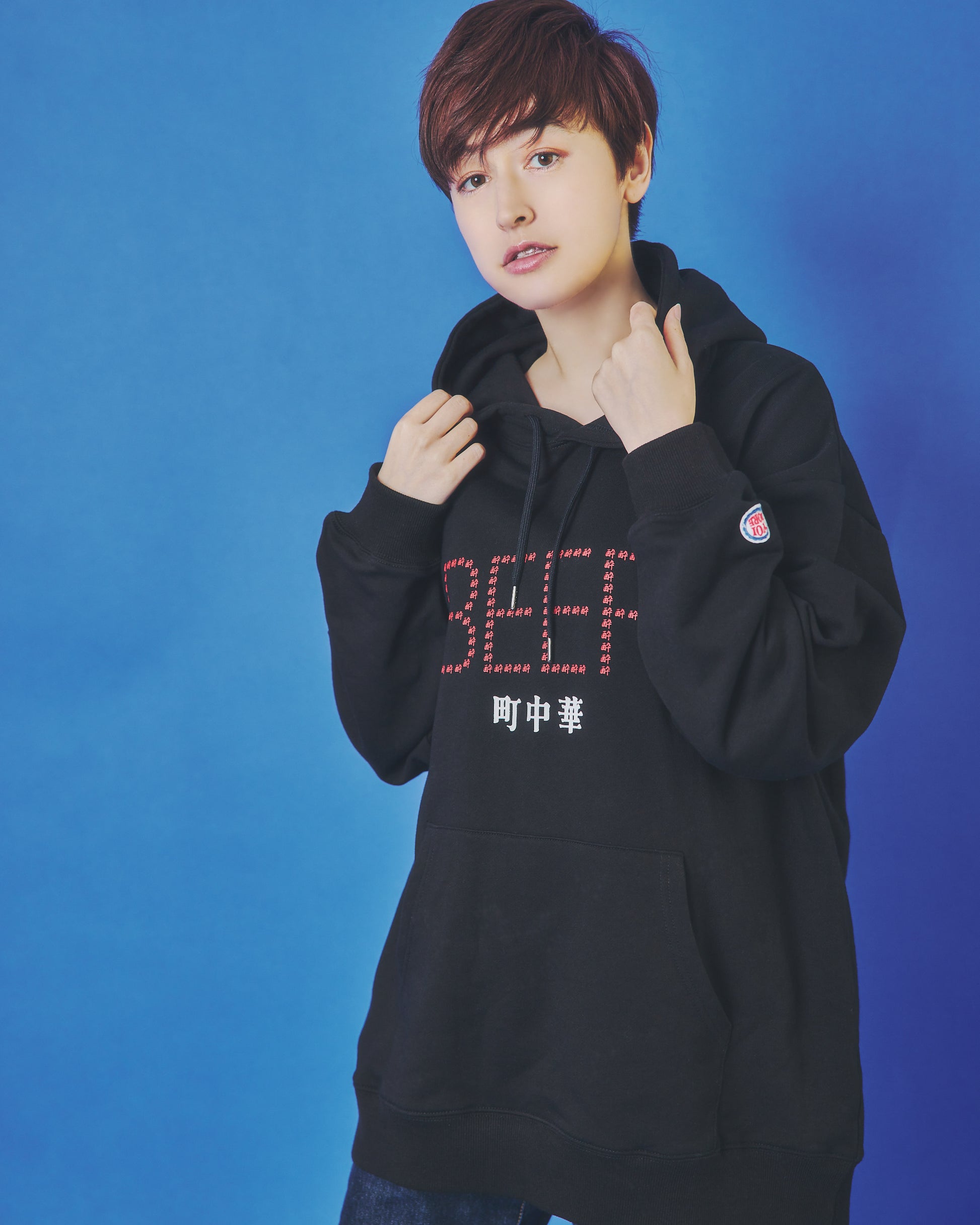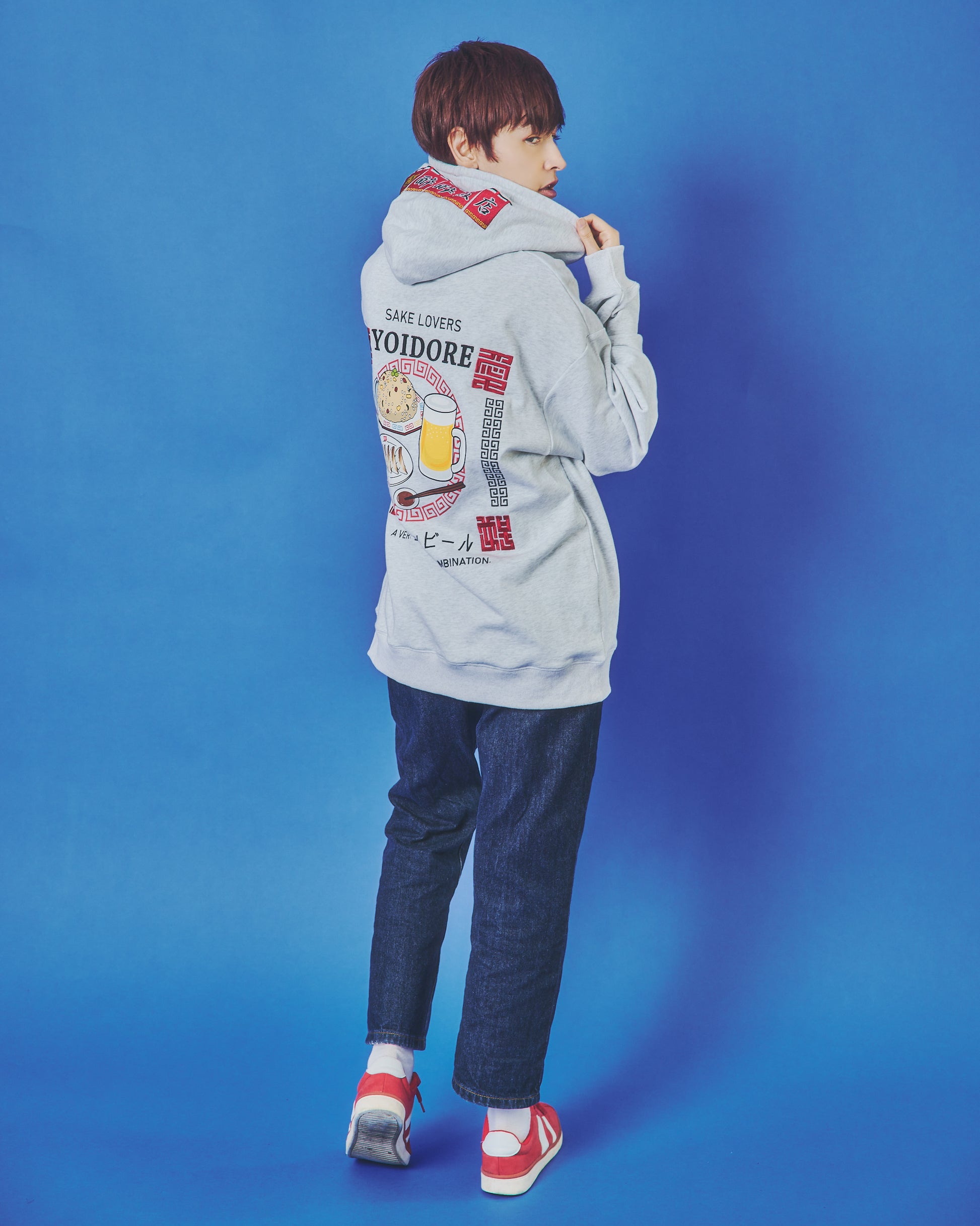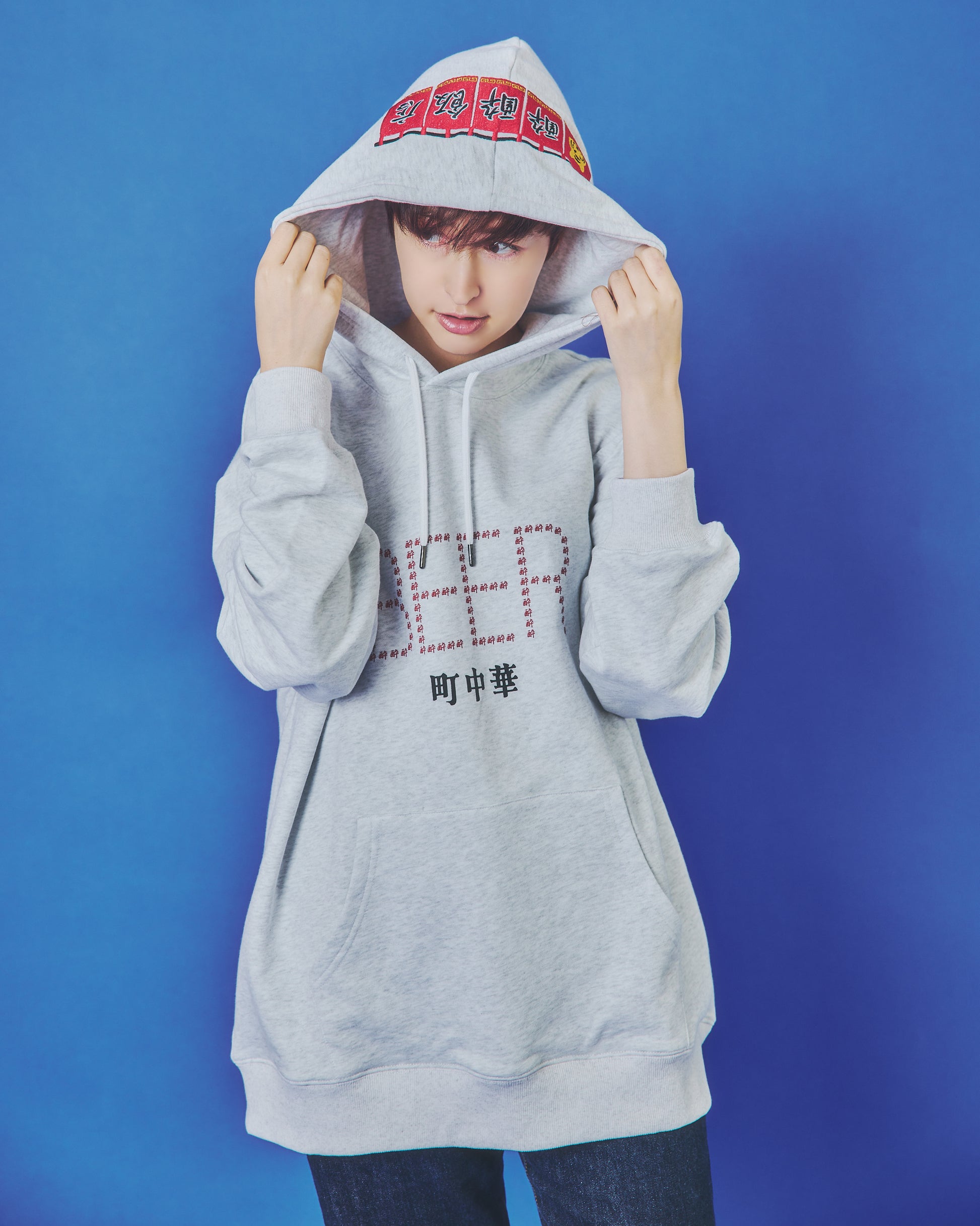 フードには架空の町中華店「酔酔飯店」の暖簾をガッチリ刺繍でアクセントに。